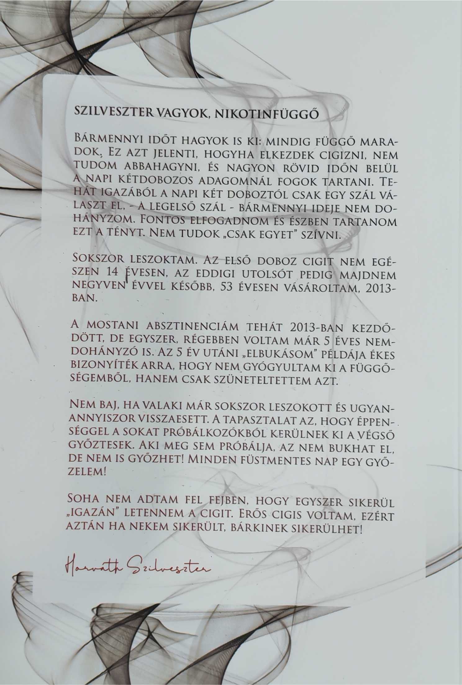 ….Soha nem adtam fel fejben, hogy egyszer sikerül „igazán” letennem a cigit. Erős cigis voltam, ezért aztán, ha nekem sikerült, bárkinek sikerülhet! Horváth Szilveszter